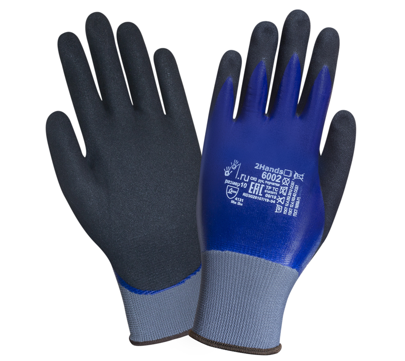 Перчатки нейлон/нитрил, полное двойное покрытие 2Hands, синие, р-р 10