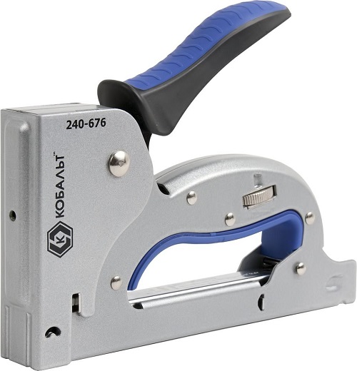 Степлер мебельный 6-14мм, тип 140, регулятор удара, увеличен магазин, индикатор перезарядки, цельнометал. корпус, КОБАЛЬТ