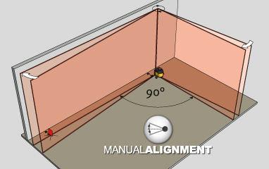 - РУЧНОЕ ВЫРАВНИВАНИЕ: две вертикальные линии образуют угол 90°. Точная и тонкая юстировка выполняется с помощью вращения колесика, размещенного на корпусе прибора. Вертикальные лазерные линии можно перемещать в нужное положение, не теряя при этом точки отвеса. Идеально подходит для точной установки U-образных металлических профилей для сухой штукатурки в межкомнатных перегородка