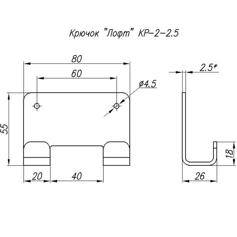 Крючок "Лофт" Кр-2 черный 2,5мм