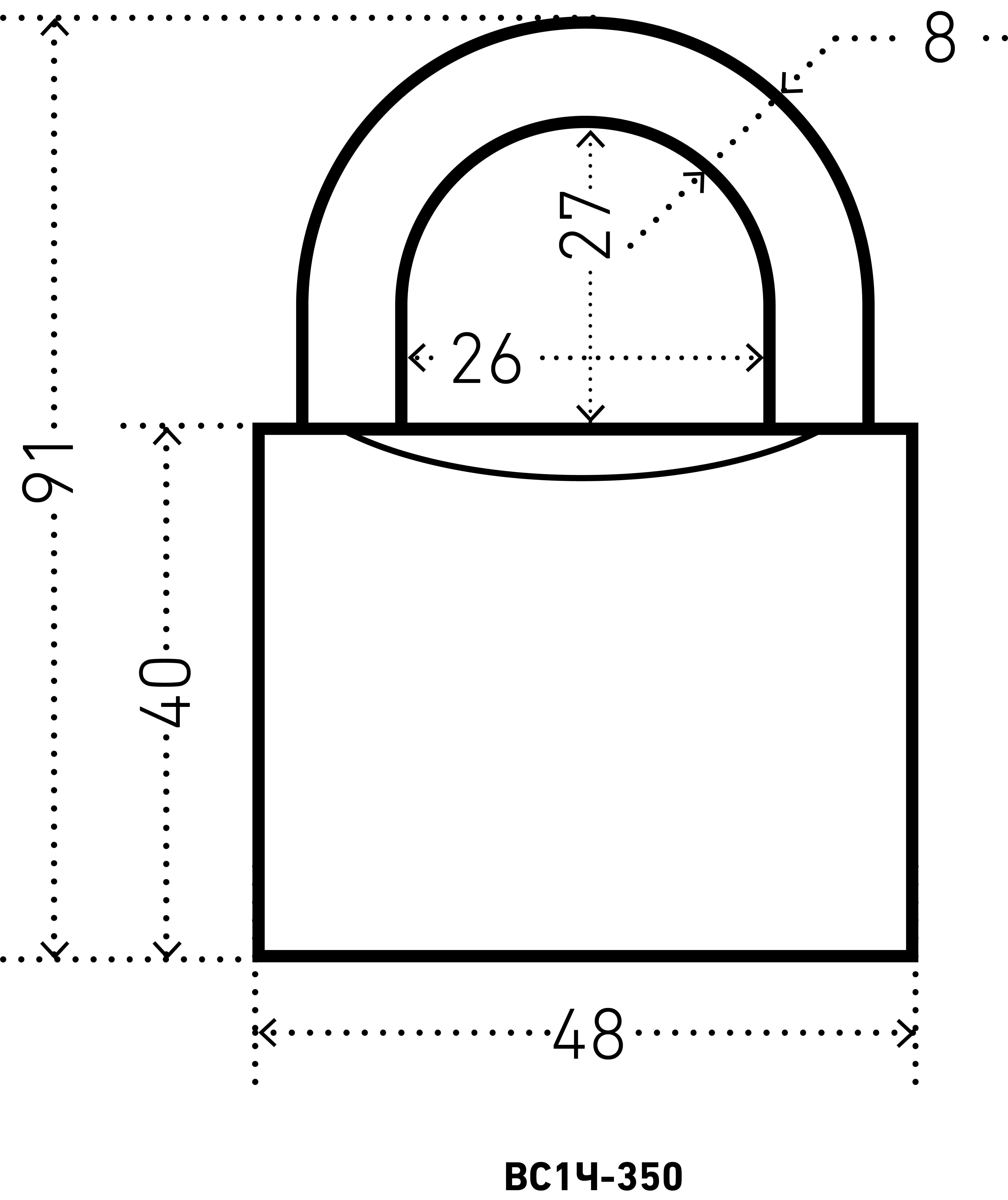 Ширина основания корпуса - 48мм, диаметр дужки 8мм.