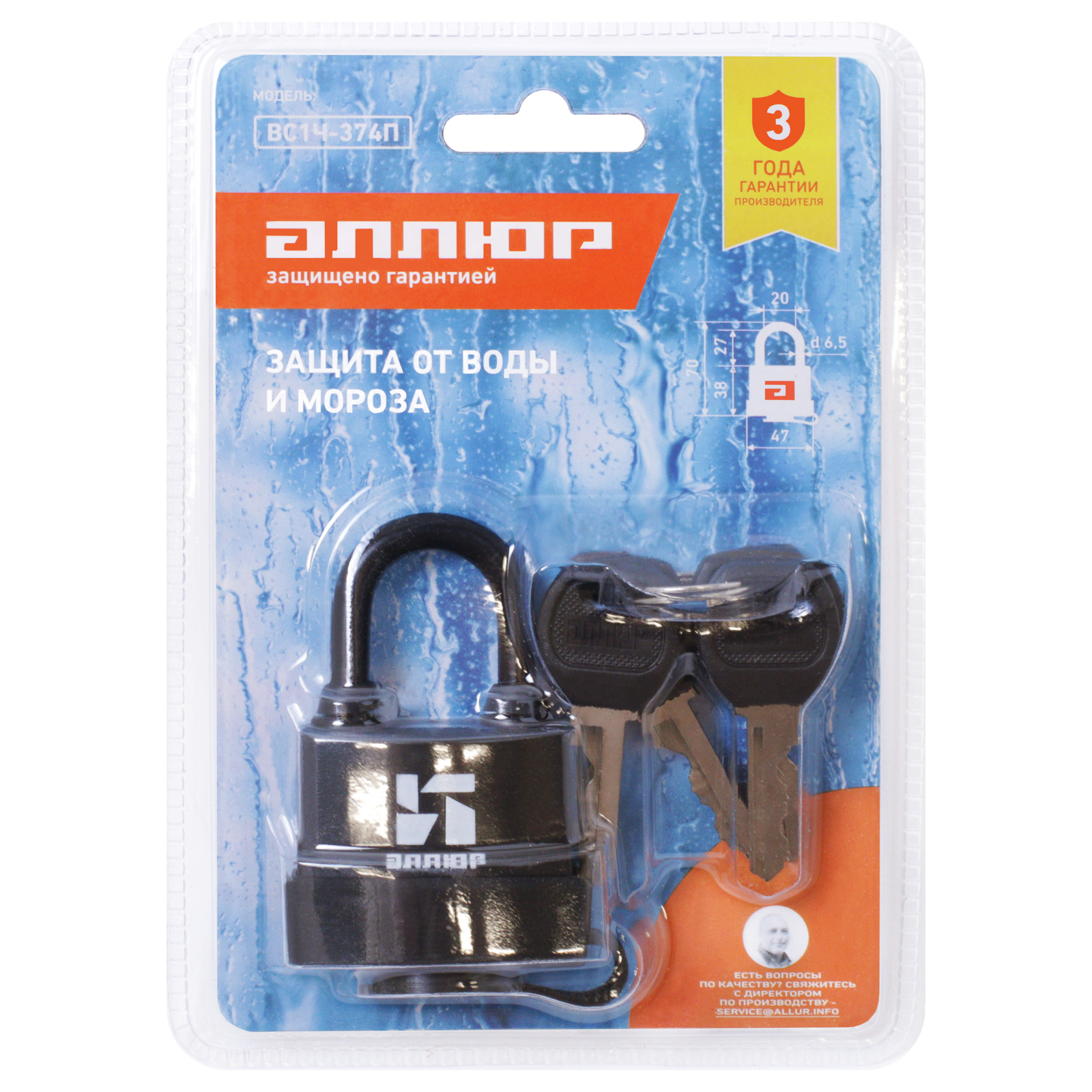 Замок навесной Аллюр ВС1Ч-374П (47*70мм) d6,5мм, 6 ключей, всепогодный
