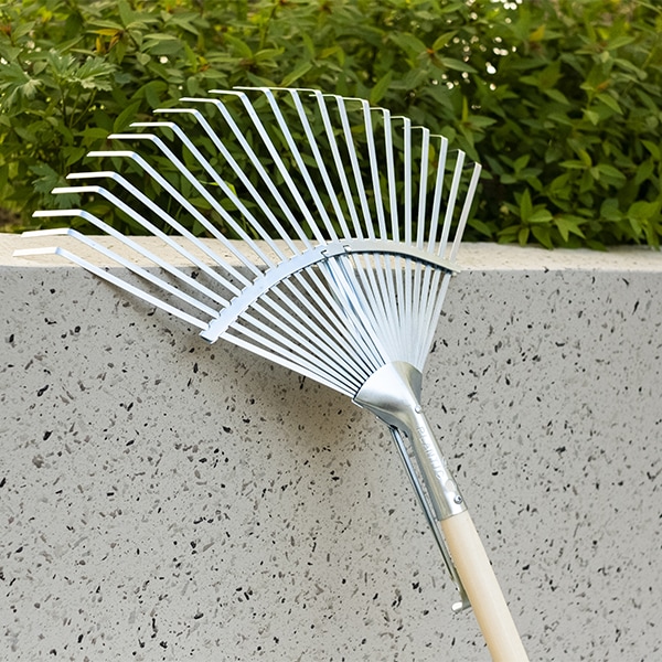Веерные грабли деревянным черенком Plantic PRO с 22 зубцами подходят для сбора листвы, сорняков, скошенной травы и другого садового мусора на открытых пространствах