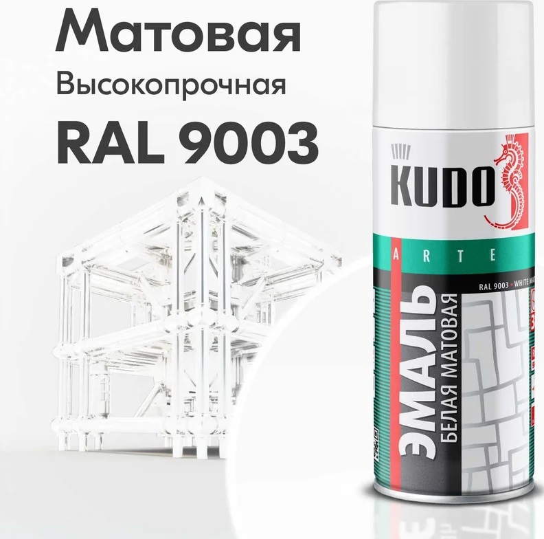 Купить Краску-спрей RAL9003 белую матовую алкидную KUDO в Екатеринбурге и Свердловской области можно в сети магазинов КРЕПЕЖ-СИТИ.