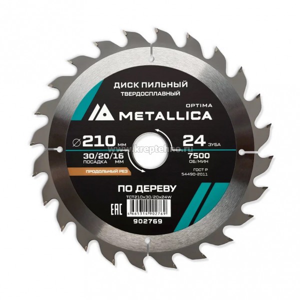 Диск пильный 210х2,6х30/20/16мм 24Z по дереву, для быстрого продольного пиления, METALLICA Optima