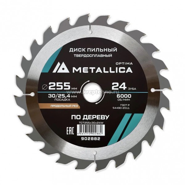Диск пильный 255х3,0х30/25,4мм 24Z по дереву, для быстрого продольного пиления, METALLICA Optima