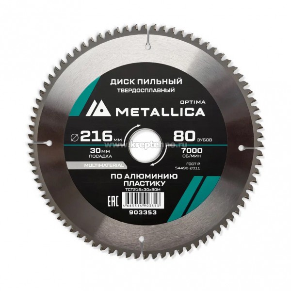 Диск пильный 216х2,6х30мм 80Z по алюминию, пластику, для чистого пиления, METALLICA Optima