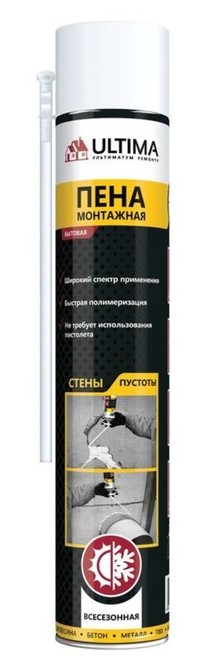 Пена монтажная всесезонная, полиуретановая 400 мл, HAUSER BASE